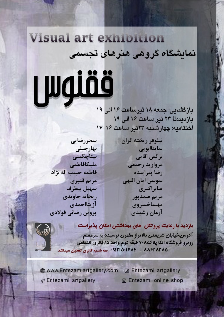بازدید: 23 تیر ساعت 16 الی 19 (سه شنبه ها گالری تعطیل است)
