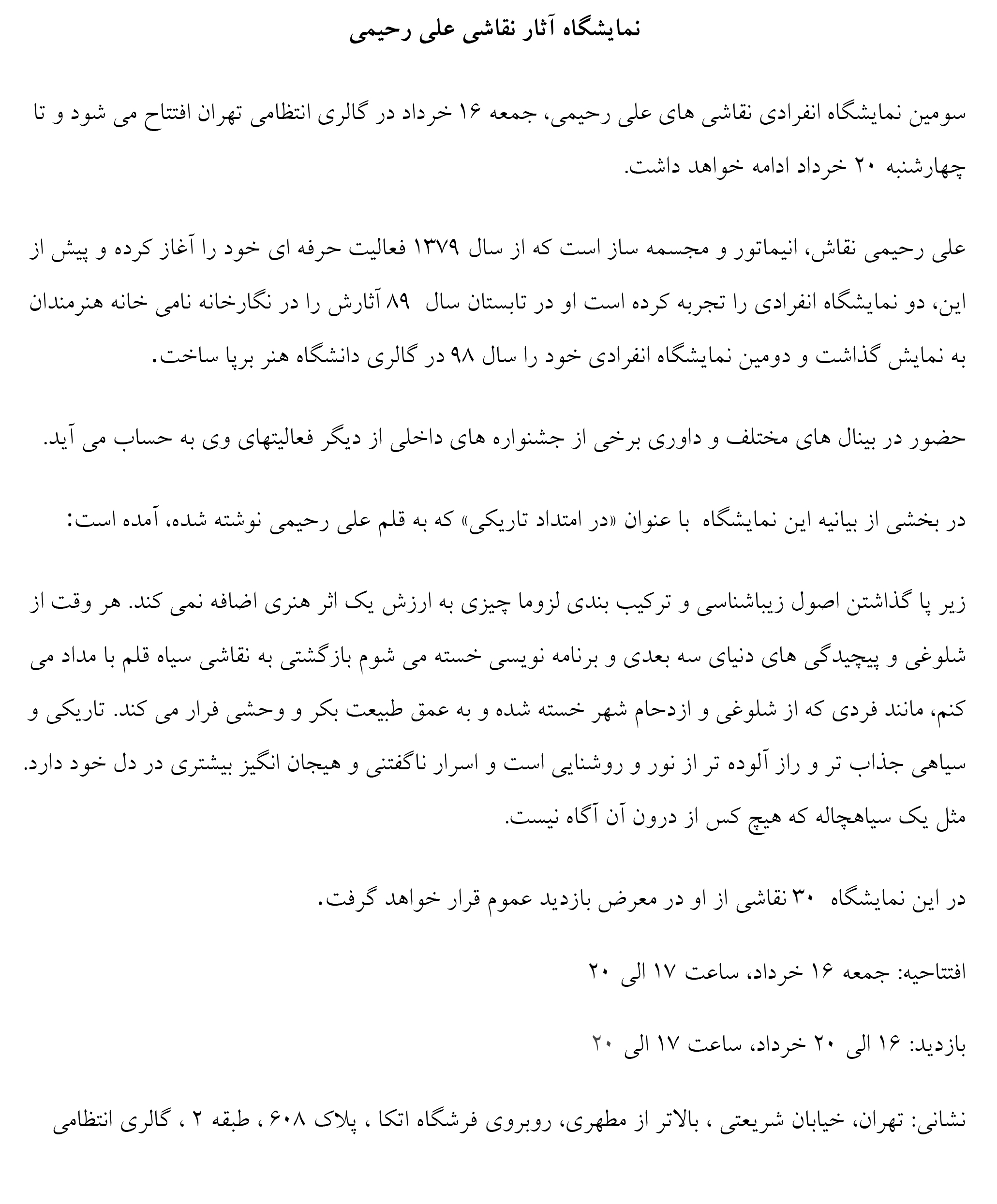 افتتاحيه: جمعه/ 16 خرداد ماه 1399 ساعت 17 تا 20